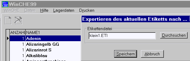 WinCHE99 erzeugt dann einen Dateinamen aus der CARN (CAS-Nummer) und einer