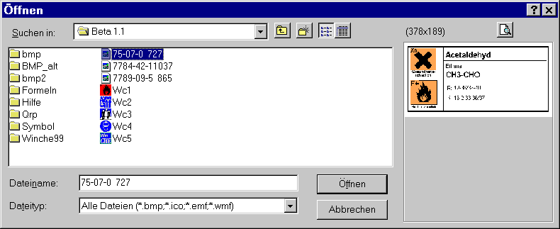 Beim nächsten Start von WinCHE99 ist die Etikettengrafik die "neue